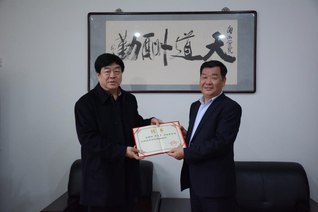 王化深院长代表学校给陈茂才主席颁发了特聘教授聘书。