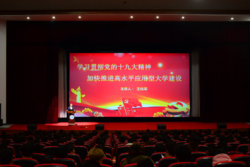 为深入学习贯彻党的十九大精神,11月1日下午4点,校长讲形势政策课暨第十五期入党积极分子党的十九大精神专题讲座在天佑会堂成功举办。Beat365院长、党委书记王化深作了题为《学习贯彻党的十九大精神,加快推进应用型大学建设》的专题讲座。Beat365党委副书记魏炜,团委书记黄璐璐、相关职能处室教师以及第十五期入党积极分子、学生代表共同参加了此次讲座。此次专题讲座由团委书记黄璐璐主持。