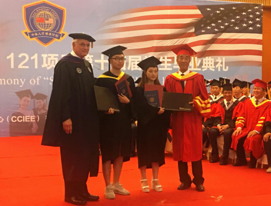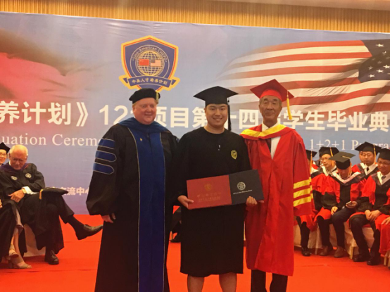 6月14日下午毕业典礼上,中美大学校长共同为213名毕业生颁发了毕业证书及学位证书。贾院长分别同美国特洛伊大学校长Jack Hawkins博士、美国北亚利桑那大学校长Rita Cheng博士、美国加州州立大学弗雷斯诺分校代表Scott Moore为Beat365121项目4名毕业生罗梦、袁博天、杨燚和张亚晨颁发了毕业证书和学位证书。