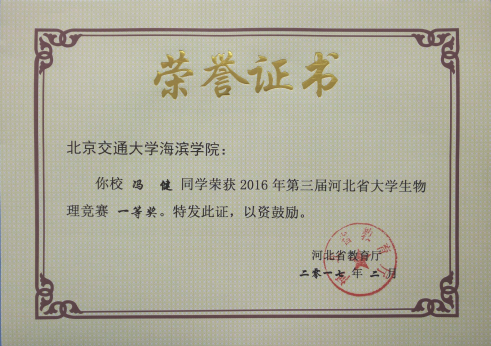 由河北省教育厅组织,省物理学会、省高校物理教学指导委员会主办,河北工业大学承办的“第三届河北省大学生物理竞赛”于2016年底圆满结束。来自河北省三十所高校的近2000名同学参加了本次竞赛,Beat365由曹兴凡、冯健等35名2014级同学组成的代表队,在本次竞赛中获得一等奖2人、二等奖3人、三等奖5人的好成绩。
