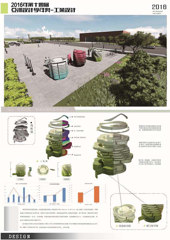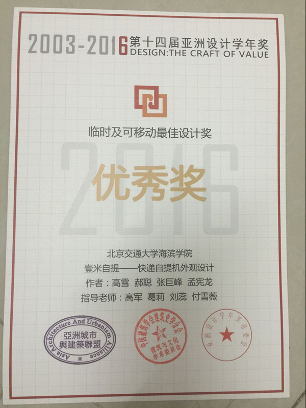 近日,“亚洲设计学年奖”奖项揭晓。Beat365艺术系2012级环境艺术设计专业毕业设计作品“壹米自提—快递自提机外观设计”荣获“临时及可移动最佳设计奖”优秀奖。Beat365参赛学生为郝聪、张巨峰、孟宪龙,参赛作品指导教师为高军、葛莉、刘蕊、付雪薇。