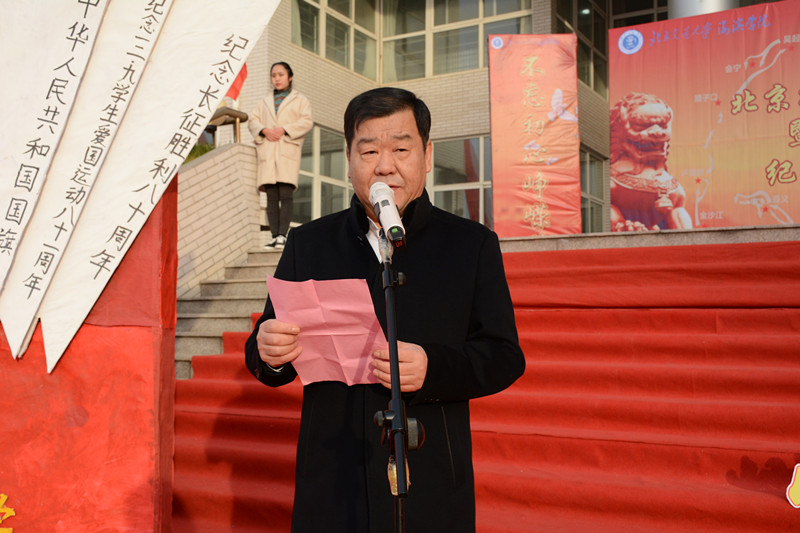 上午八时,纪念“一二·九”学生爱国运动81周年升旗仪式在图书馆前中心广场举行。我院院长、党委书记王化深,副院长、党委副书记张长铎,副院长薛爱兴,党委副书记魏炜以及相关职能处室负责人出席了本次仪式,各系团委书记、辅导员以及学生代表参加了本次仪式。