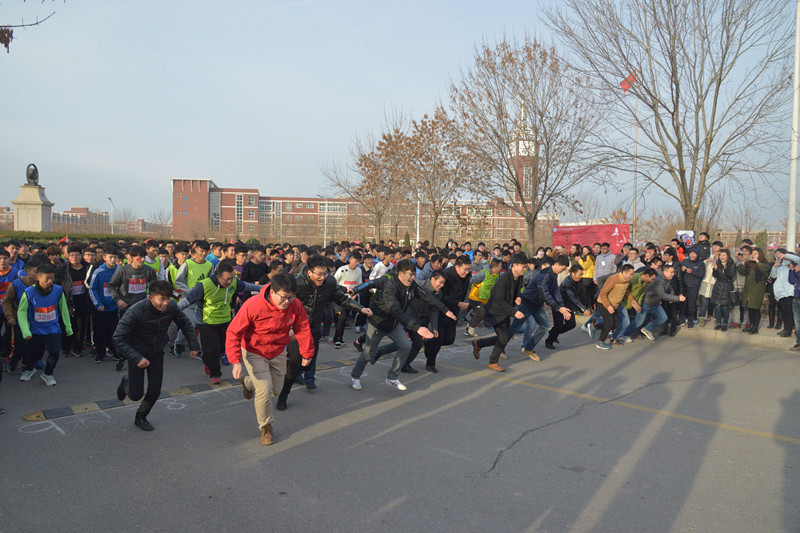 火炬传递结束后,阳光长跑活动拉开帷幕。王院长和薛院长分别为男子组及女子组鸣枪发令,并且薛院长、魏书记亲自为阳光长跑活动领跑,九个系的运动员开始进行激烈角逐。