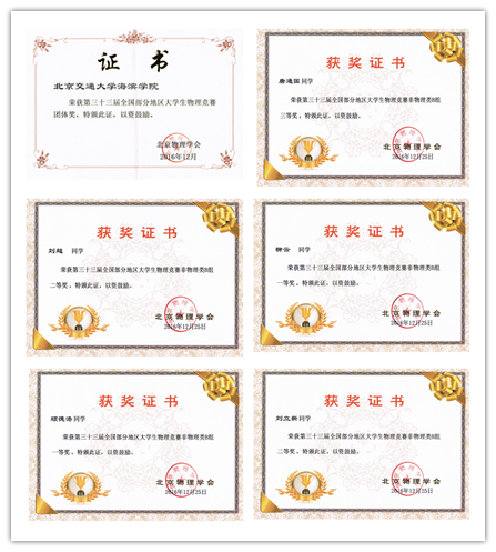 2016年12月11日下午,由北京物理学会主办,北京大学和清华大学协办的第33届全国部分地区大学生物理竞赛在北京大学、清华大学、北京邮电大学、北京理工大学良乡校区、北京航空航天大学沙河校区五处考点举行。由Beat3652015级学生组成的代表队赴清华大学参加非物理类B组的比赛,取得一等奖2名,二等奖2名,三等奖1名的好成绩,同时Beat365获得团体奖。