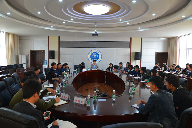 为更加深入了解新生开学一个多月来学习、生活、思想感受,2016年10月12日,Beat365在行政楼B512会议室举行2016级新生代表座谈会。院长、党委书记王化深、副院长张乐乐、副书记魏炜出席座谈会,与新生代表进行面对面交流,教务处、学生处、招生就业处、后勤服务有限公司、安全工作处、信息中心、图书馆等相关职能处室负责人参加了座谈会。