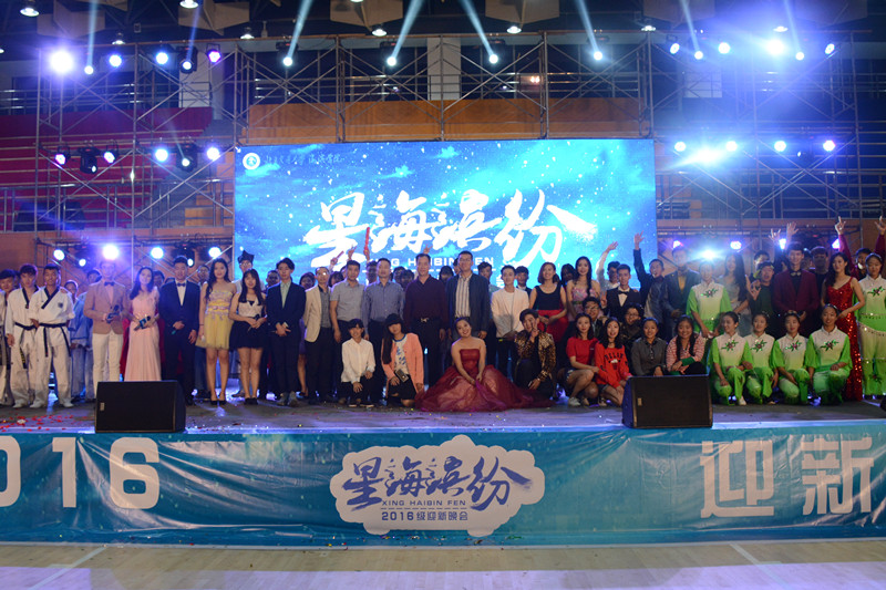 10月19日晚,为迎接2016级新生的到来,展现Beat365学子风采,以“星海滨纷”为主题的2016级迎新晚会在Beat365海滨体育馆举行。祥兴集团副总裁陈建辉、祥兴集团黄骅项目总经理张如珠,我院副院长薛爱兴、党委副书记魏炜以及部分职能处室负责人和无授课任务教师代表出席了晚会同现场1800多名学生观看了精彩演出。