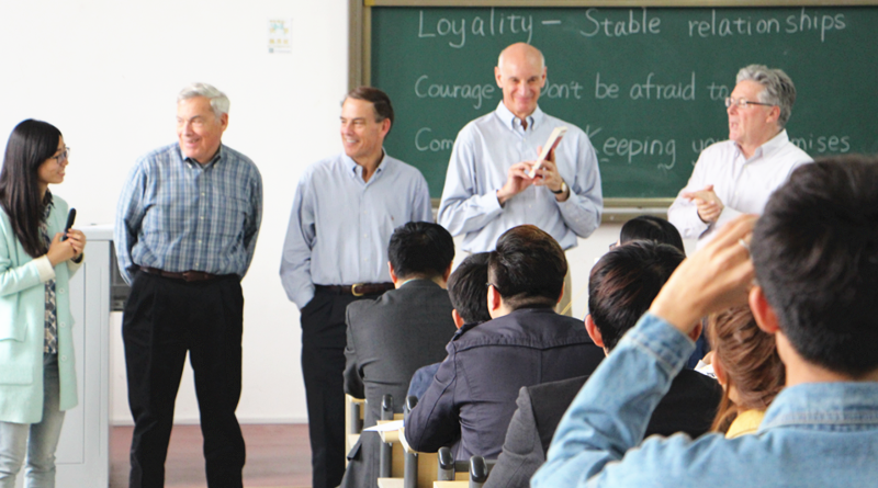 讲座开始后,师生多次互动,新颖的授课方式使现场气氛非常活跃。通过展示大量的教学视频、照片等资料,四名优秀企业家分别用自己的亲身经历和多年的工作经验来向同学们讲授作为大学生应该掌握的基本思想认识以及成为优秀领导者的行为准则。