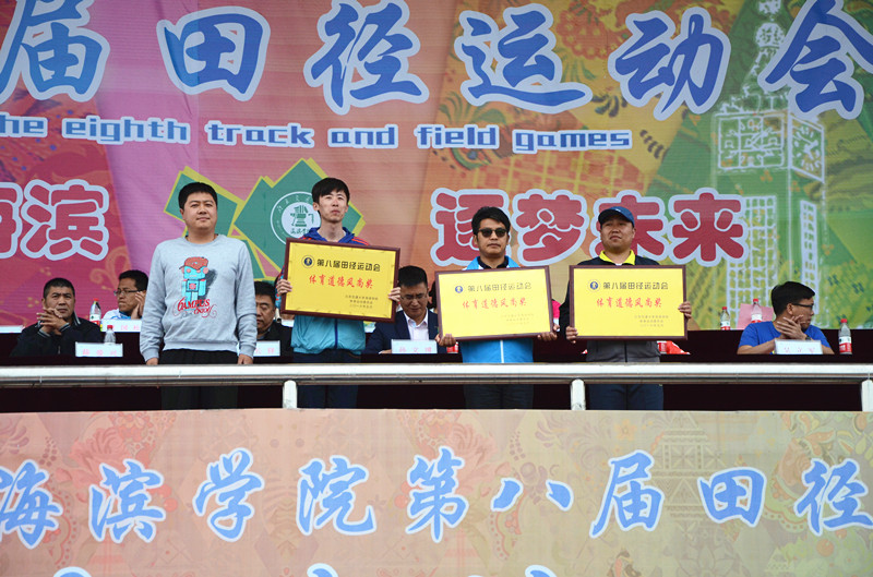 薛爱兴副院长宣布了北京交通大学海滨学院第二届篮球3V3比赛、北京交通大学海滨学院第五届排球比赛、北京交通大学海滨学院第五届拔河比赛、北京交通大学海滨学院第五届足球比赛的比赛结果。随后,与会院领导及职能处室负责人分别为获奖团体颁奖。