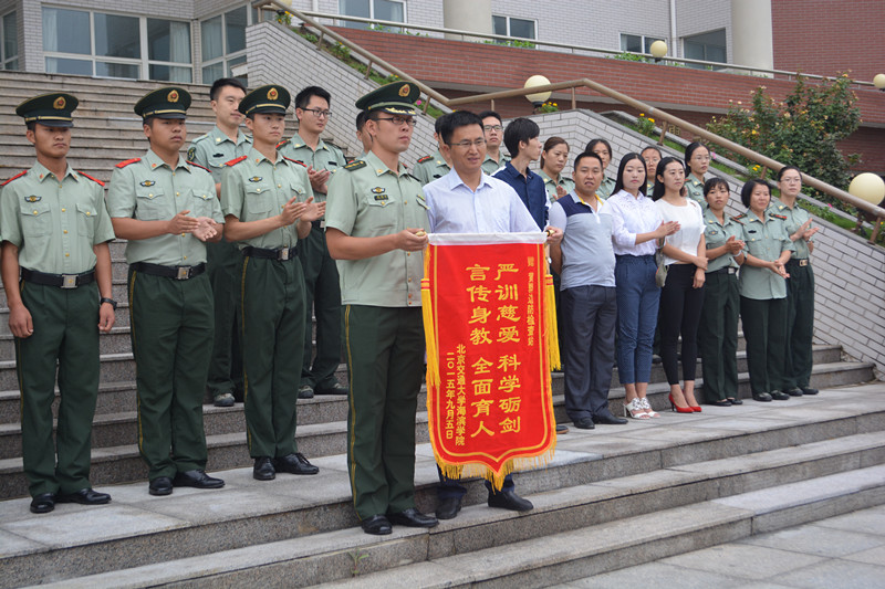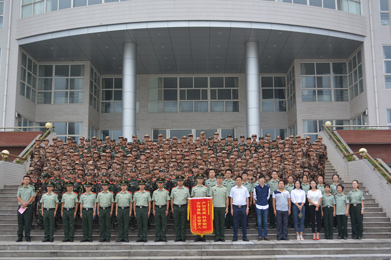 最后,孙文博副书记为部队训导教官敬献了锦旗,并与军训教官合影留念。