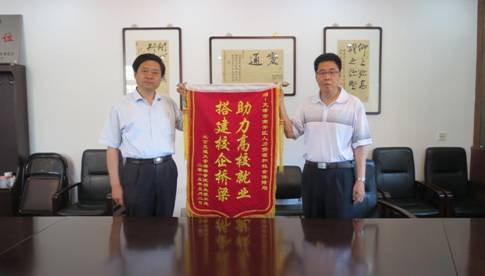 为感谢两家企事业单位对我院毕业生就业工作的大力支持,徐爱国副院长借本次交流机会为天津市南开区人力资源和社会保障局、天津市津轻人才交流服务中心两单位当面赠送锦旗,并与天津市南开区人力资源和社会保障局马国栋局长、天津市津轻人才交流服务中心门建仁经理进行了亲切交流。双方就近几年的毕业生就业情况和就业前景进行了沟通,并对今后的进一步合作达成了一致意见!