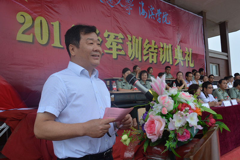 大会最后,王化深院长做了讲话,他指出军训十天,同学们取得了三个方面的成绩:一是磨练了意志、增强了信心。二是提高了素质、强健了体魄。三是培养了优良的作风。王院长希望同学们今天脱去军训的战袍,洗去军训的疲惫,能够拿起学习的书本,在未来的大学生活中保持和发扬锐意进取、顽强克难、艰苦奋斗的军训精神,以优异的成绩和自己的成才来报答父母、回报社会,用自己的“成才梦”和“学子梦”来铸就我们共同的“学院梦”、“中国梦”!