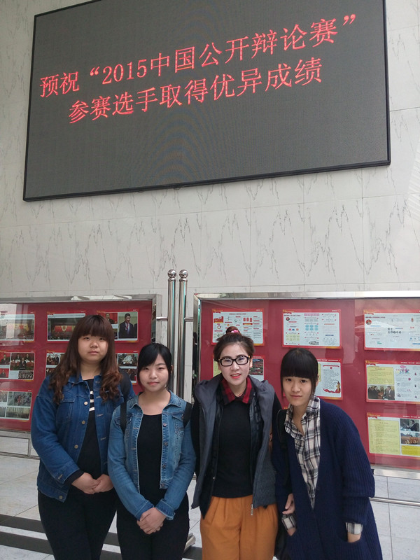 5月8-10号,2015 China Open中国公开辩论赛在哈尔滨商业大学拉开帷幕,共有来自美国、韩国等海内外百余所知名高校的320支队伍、600多名选手展开激烈辩论。我院由外语系张丽、张娜老师带队,选派4名英语辩手参赛。比赛中,我院选手与各高校代表队展开激烈交锋,凭借出色的口才、敏捷的思维一路过关斩将,最终,外语系2012级学生智春妍、2013级学生蒋玲燕、石娜、马琼堃四名学生均喜获全国三等奖。