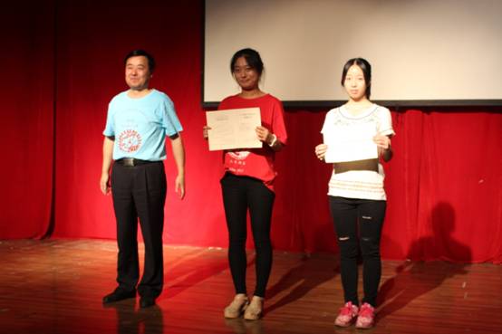 期间,执行院长王大勇还为2014年“外研社杯”全国英语写作大赛获奖的学生及指导教师颁发荣誉证书,副院长张乐乐为我院口语AB证所有获奖选手颁发荣誉证书。