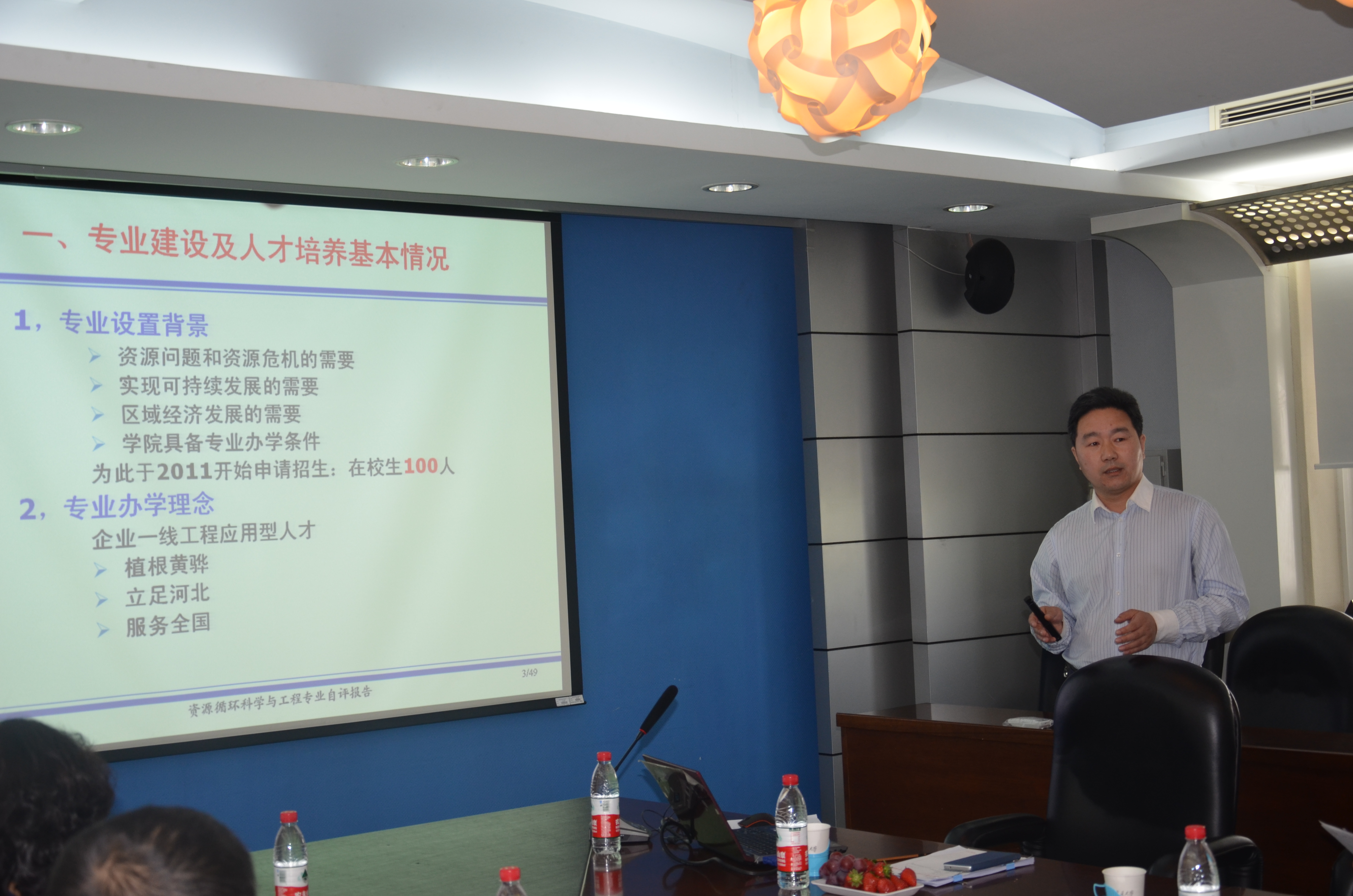 按照《河北省普通高等学校增列学士学位授予单位及新增学士学位授权专业审核办法》(冀学位〔2014〕7号文)等文件的要求,光电信息工程专业负责人魏学业教授、数字媒体艺术专业负责人王丽君副教授、资源循环科学与工程专业负责人郑辉杰副教授分别作了专业自评报告。他们从专业建设及培养方案、师资队伍、办学条件与实践教学、课程及教学管理、教学效果等方面向专家组进行了全面汇报。随后,专家组查阅了各专业评估申报材料,并就各专业建设与发展过程中存在的具体问题,与我院领导及各专业负责人进行了广泛交流与深入探讨,并最终形成预评估审核意见。会上,各专业负责人分别作了发言,表示一定会按照专家组提出的意见和建议,进一步改进和完善本专业学士学位授权评估及专业建设工作。