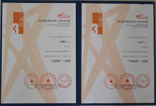 在全国总赛上,我院艺术系马嘶风老师指导的方志宇同学的参赛作品获得动画类三等奖。