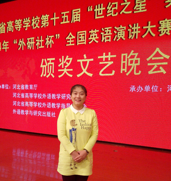 11月1日,河北省高等学校第十五届“世纪之星”英语演讲大赛决赛暨2014年“外研社杯”全国英语演讲大赛(河北赛区复赛)在河北外国语学院举行。来自全省各类高校的231名选手参加比赛。我院外语系主任助理张丽老师、基础教学部大学英语教研室连芳老师分别带领英语专业学生和非英语专业学生参赛。
