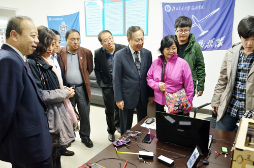 访问期间,在我院领导的陪同下,陈思齐一行乘车参观了我院校园,并实地考察了校史馆、实验室及大学生创业园。
