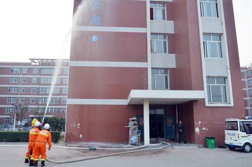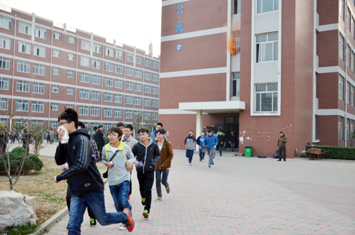 下午4:00,薛爱兴副院长宣布演练正式开始。按照活动流程:模拟火情发生、拨打报警电话、启动火灾应急预案、打开消防疏散通道,按领导指示迅速摸清火情、疏散学生,引导消防车和救护车赶往火场、全力实施救援、扑灭大火。各个环节紧张有序、有条不紊,各相关单位步调一致、密切配合。火灾应急逃生疏散演练基本达到了预期效果。