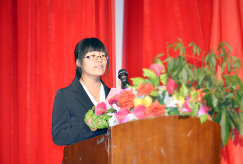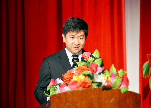 随后,教师党员代表基础教学部思想政治教育教研室牛晓靖老师、学生党员代表土木工程系郭枫晨同学结合工作和学习实际,分别就如何践行社会主义核心价值观作了大会发言。