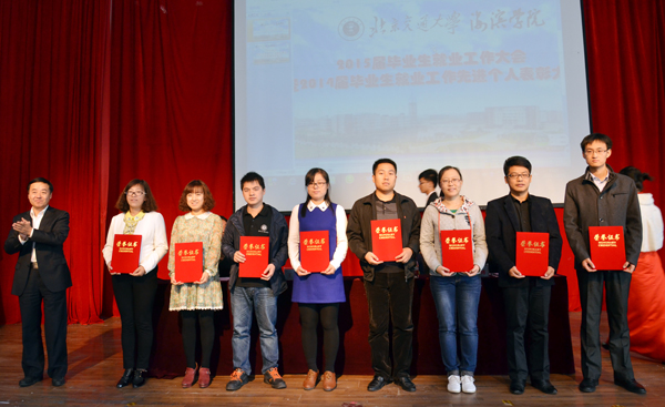 孙文博副书记宣读了《关于表彰2014届毕业生就业工作先进个人的决定》,对为我院2014届毕业生就业工作做出突出成绩的先进个人给予表彰。王大勇执行院长为获奖者颁奖。