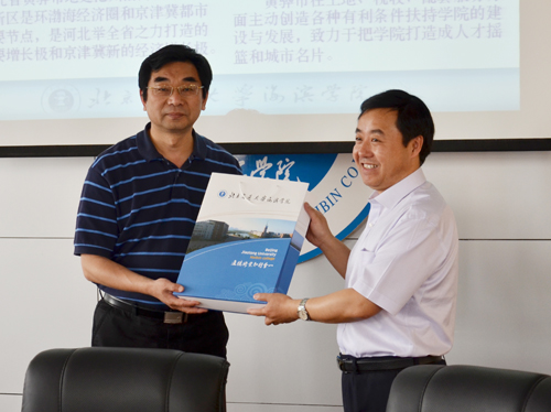 上午9:00,王大勇执行院长在行政楼五楼会议室主持召开座谈会,向客人们介绍了我院的办学模式、校园规划、基础建设以及教育教学情况。杨军副书记介绍了北京信息科技大学的总体情况,表明此次到访的目的主要是考察校园建设情况,借鉴建筑设计经验。会上,张如珠总经理代表华城公司简要介绍了建筑设计基本情况。此外,杨军副书记与王大勇执行院长分别代表两校互赠了纪念品。