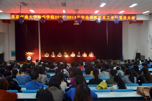 10月13日下午,我院在实验楼报告厅召开2013-2014学年全体教职员工、全体党员大会。院领导高福廷、王大勇、张长铎、贾怀义、吴子成、周俞波、薛爱兴、孙文博以及各系部处室负责人、专业负责人出席会议。我院全体教职员工、学生党员代表参加会议。
