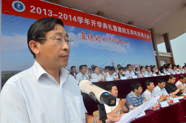 今天我们在这里隆重集会,举行2013级新生开学典礼暨建院五周年庆祝大会。在此,我首先代表海滨学院全体师生员工向出席大会的各位领导、各位来宾表示衷心的感谢,向刚刚成为海滨学子的2013级新同学们表示热烈的祝贺。值此建院五周年之际,向为海滨学院的建设与发展给予大力支持的上级领导,北京交通大学、祥兴集团、黄骅市政府,社会各界以及直接参与海滨学院建设发展并付出心血与汗水的全体海滨人致以崇高的敬意!