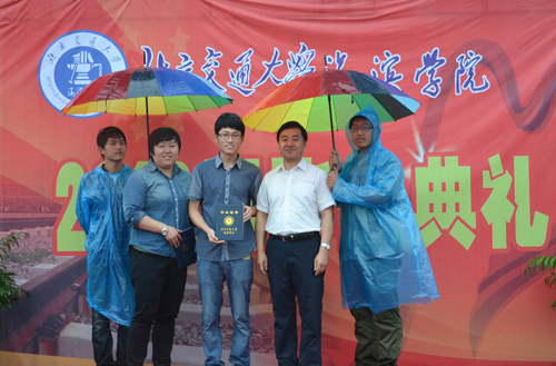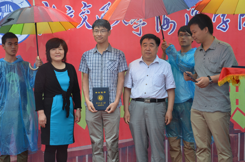 6月22日上午,2013届毕业生毕业典礼在完成领导讲话、师生代表发言和颁奖环节之后,我院领导冒着小雨为毕业生一一颁发毕业证书。