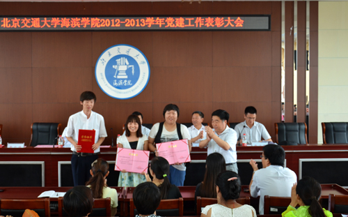 7月13日下午4:00,我院在行政楼五楼会议室召开2012-2013学年党建工作表彰大会。北京交通大学党委副书记、我院院长高福廷,我院执行院长王大勇,副书记兼副院长张长铎,副院长吴子成、徐维祥以及各相关单位负责人、各党支部书记出席会议。我院全体教职工党员及学生党员参加会议。表彰大会由学生处处长孙文博主持。