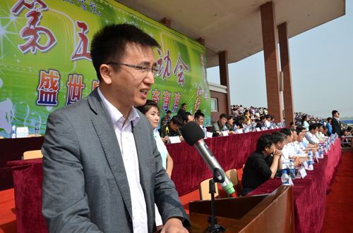 开幕式上,我院体育委员会常务副主任、副院长周俞波致开幕词。周俞波副院长代表学院领导班子及本届运动会组织委员会,向出席开幕式的各位领导和嘉宾表示热烈的欢迎,向为筹备本届运动会而付出辛勤劳动的全体工作人员表示衷心的感谢。同时,周俞波副院长对一年来我院师生在各类体育比赛所取得的优异成绩进行了全面总结,对我院体育工作的最新进展进行了简要介绍。此外,为确保本届运动会顺利进行,周俞波副院长还对全体运动员、教练员、裁判员和工作人员提出相关要求。