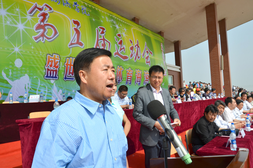 5月19日上午8:00,以“盛世中国,体育海滨”为主题的我院第五届运动会在学院体育场隆重开幕。出席开幕式的领导和嘉宾有:黄骅市政府副市长郑增强、市教育局局长康学树、市文广新局副局长范晓东;华城公司总经理张如珠;我院执行院长王大勇,副书记兼副院长张长铎,副院长吴子成、周俞波以及各职能处室负责人、各系部主任、专业负责人。开幕式由学生处处长孙文博主持。