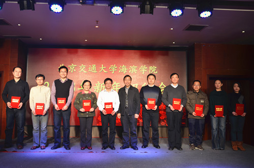 在颁奖仪式上,我院党委书记路加栓宣读了《关于表彰2012年度学院先进单位和优秀中层干部的决定》,边老刚副主席为学院先进单位颁奖,高福廷院长为优秀中层干部颁奖。副院长吴子成宣读了《关于表彰2012年度优秀兼职教师的决定》,潘海瀛市长为优秀兼职教师颁奖。副院长贾怀义宣读了《关于表彰2012年度“瑞和方圆”奖教金优秀青年教师和优秀青年教育工作者的决定》,谈振辉教授为优秀青年教师和优秀青年教育工作者颁奖。