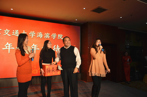 宴会期间,学院办公室精心安排了多项抽奖环节,邀请各位领导和嘉宾分别上台进行当场抽奖,现场有多名教职工收获了丰厚的奖品。同时,薛行远董事长还特地为学院全体教职员工准备了190个红包,连环进行开奖,现场领取红包,掌声和欢笑声此起彼伏,把整场招待会推向一个又一个高潮。