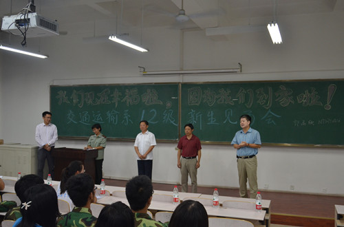 按照学院的统一安排和部署,9月4日晚7点,各专业召开第一次新生见面会。执行院长王大勇,党委书记路加栓,副院长贾怀义、吴子成、周俞波、徐维祥在学生处处长孙文博、副处长黄璐璐的陪同下,分成两组,亲临专业见面会现场看望2012级新同学。