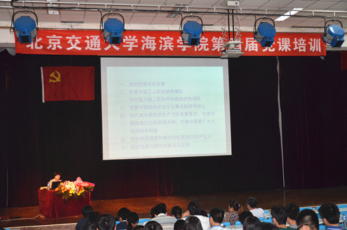 5月16日下午4:00,我院第四届党课培训在实验楼报告厅举行。本届党课培训特邀北京交通大学党委副书记高艳担任主讲嘉宾。我院执行院长王大勇、党委书记路加栓、副院长吴子成出席培训报告会。全体党员、入党积极分子及全体辅导员参加了本次培训。培训报告会由学生处处长孙文博主持。
