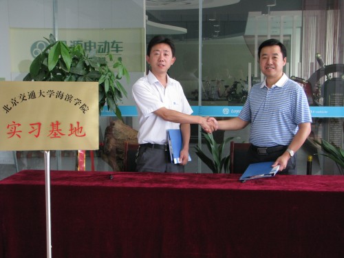 王院长与陈总分别介绍了双方目前发展情况,对此次合作充满信心。陈总表示,海滨学院虽然建院时间短,但发展前景不可限量,希望能与我院进行更深层次合作,并提出与我院自动化专业共建研发中心的想法,表达了其合作诚意。随后,双方共同签署了校企合作协议书,并举行了校企合作挂牌仪式。陈总还热情邀请王院长一行参观了绿源电动车(山东)有限公司生产车间,介绍公司发展历程及主要产品。