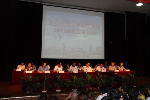9月4日下午4点,我院在综合报告厅召开了2011级新生家长见面会,会议由王大勇执行院长主持,在院院领导、各部门负责人及各专业负责人出席了家长会。