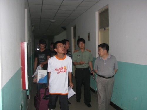 2011年9月4日,是我院2011级新生报到的第一天。当晚,执行院长王大勇、党委书记张平之、副书记兼副院长张长铎、副院长贾怀义、吴子成、周俞波以及办公室、学生处、招生就业处、后勤管理处等负责人在11级辅导员的陪同下走访了学生寝室,亲切慰问刚刚入学的2011级新生。