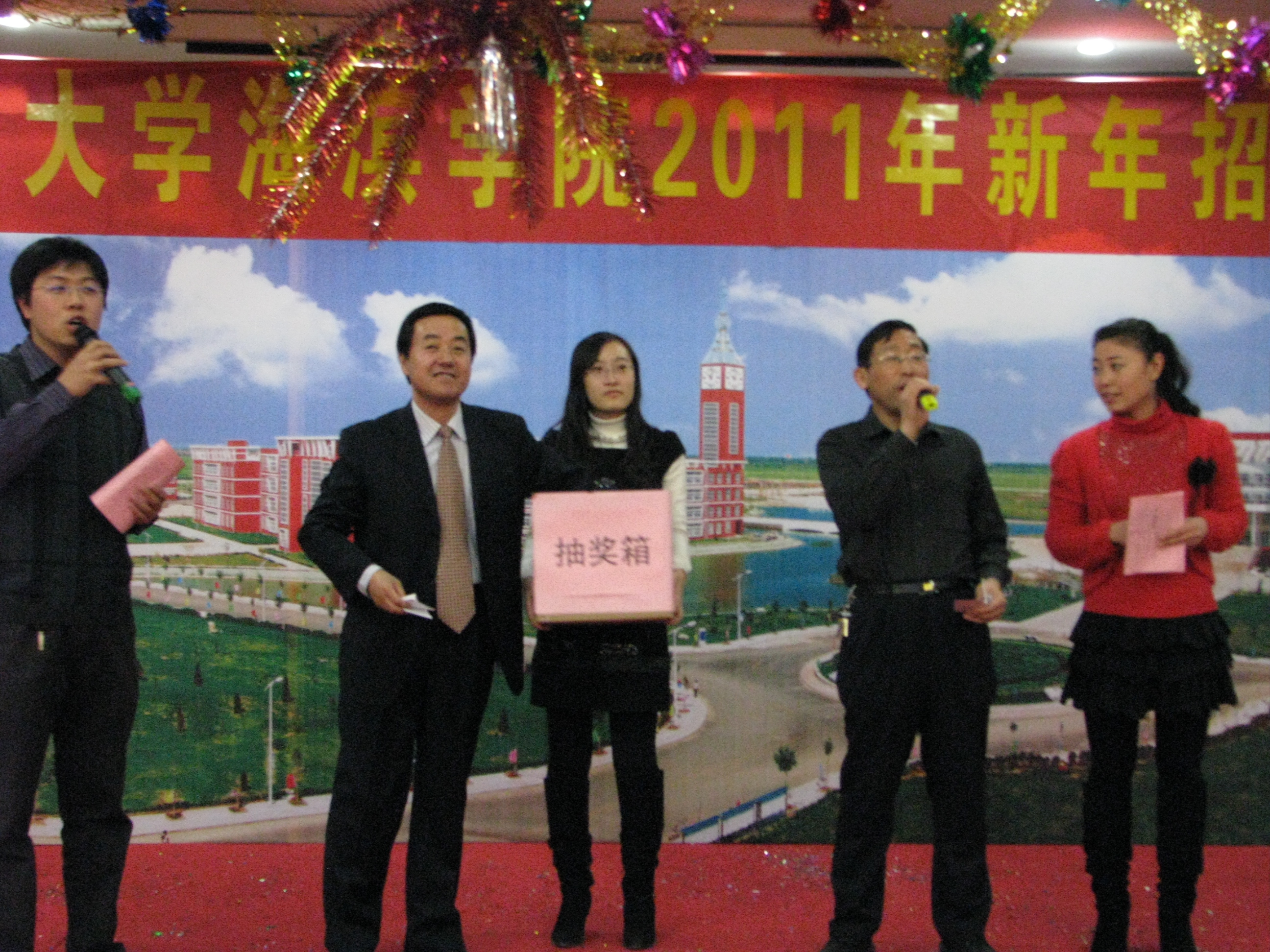 招待会由王大勇执行院长主持。黄骅市市长边老刚和院长高福廷分别致新年贺词,他们为在过去的一年里辛勤工作的全体教职工送上了温馨的新年祝福,并号召大家在新的一年里在本职岗位上多做贡献,为把我院建设成为全国一流独立学院而努力奋斗!