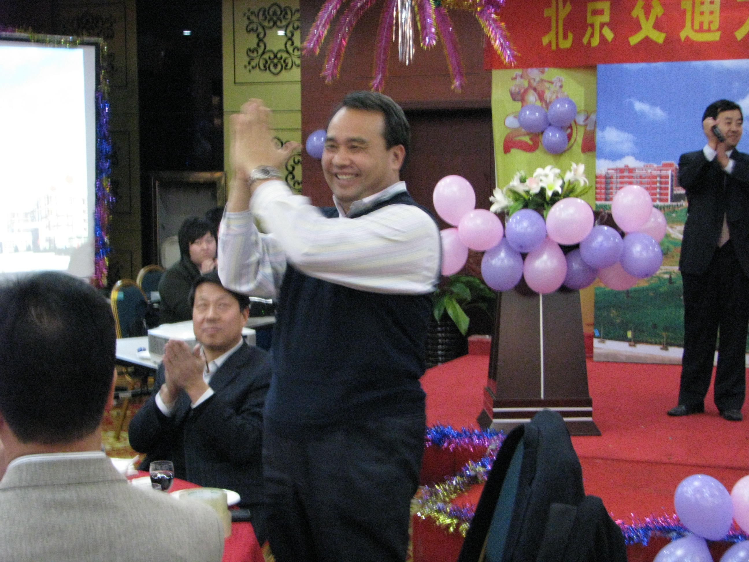 宴会期间,大家频频举杯,温馨与和谐的氛围荡漾周围。出席会议的领导、嘉宾以及全院教职工脸上始终洋溢着喜庆的笑容,整个招待会温馨祥和,谱写了海滨人又一个荣辱与共、团结奋进的佳话。