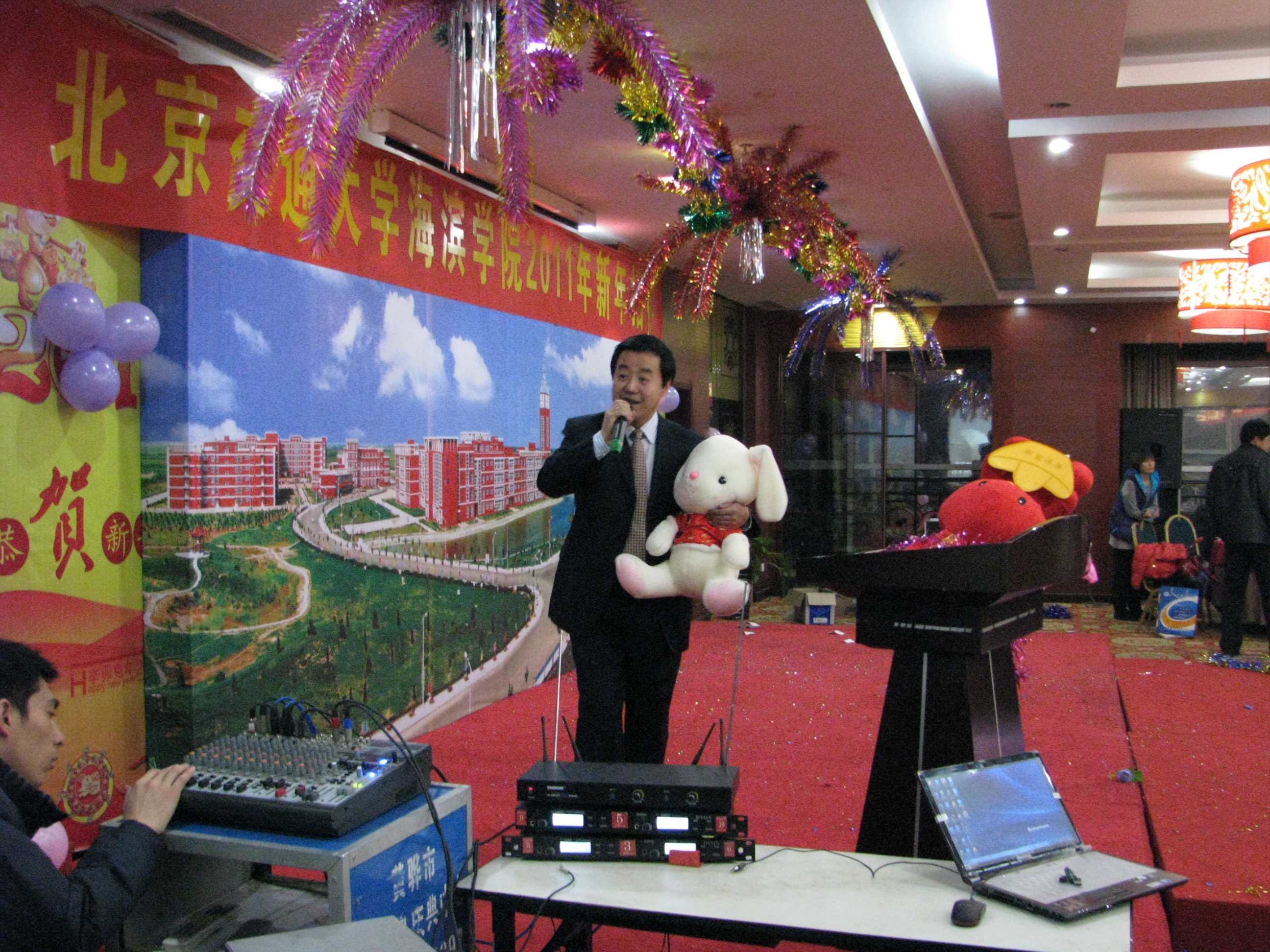 我院于12月30日晚在华悦凯旋大酒店南海厅隆重举行2011年新年招待会。黄骅市人民政府市长边老刚,学院董事长薛行远,北京交通大学党委副书记、院长高福廷以及全体院领导和华城科教有限公司有关负责人与全院教职工欢聚一堂、辞旧迎新、共谋发展。