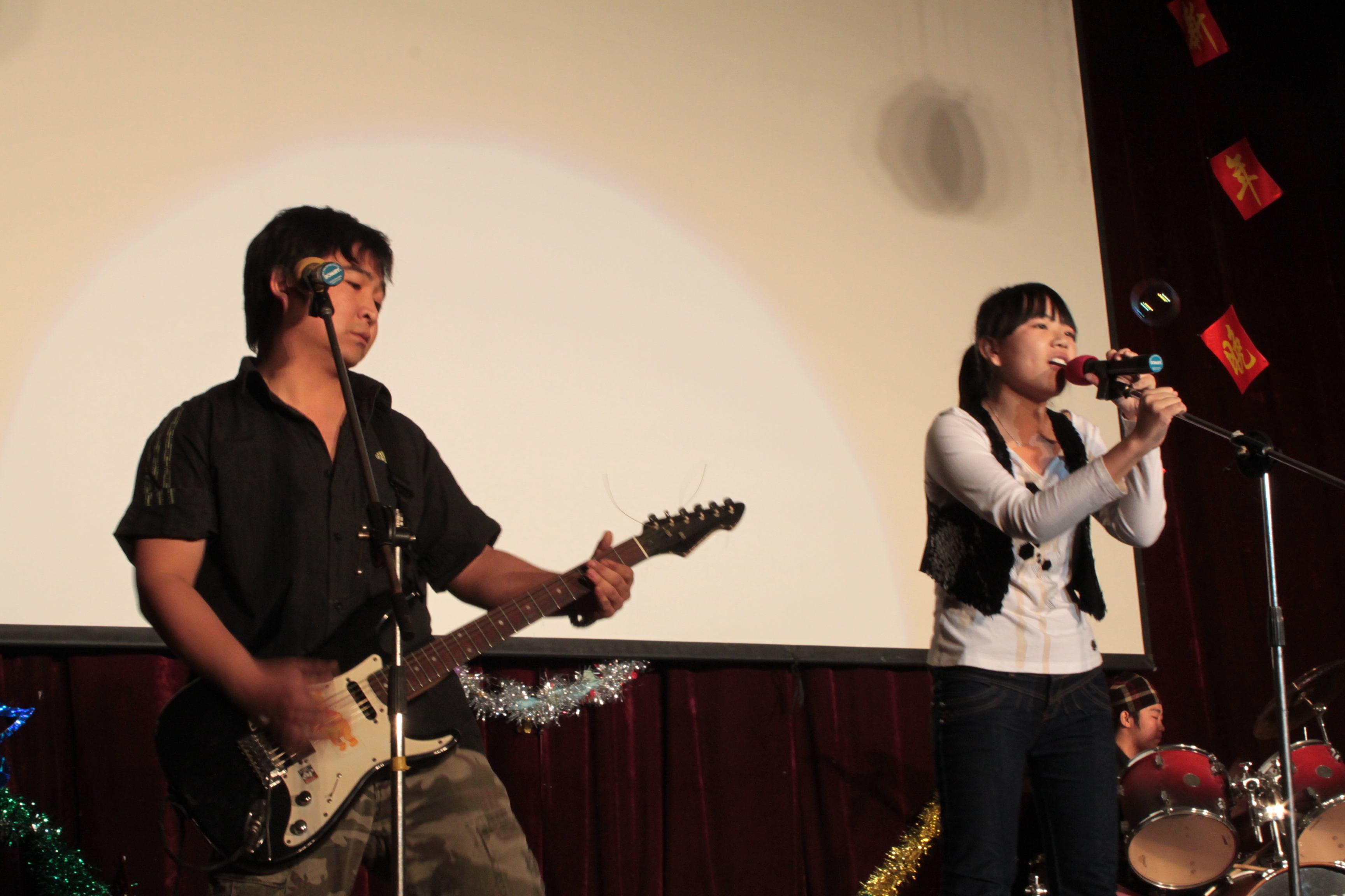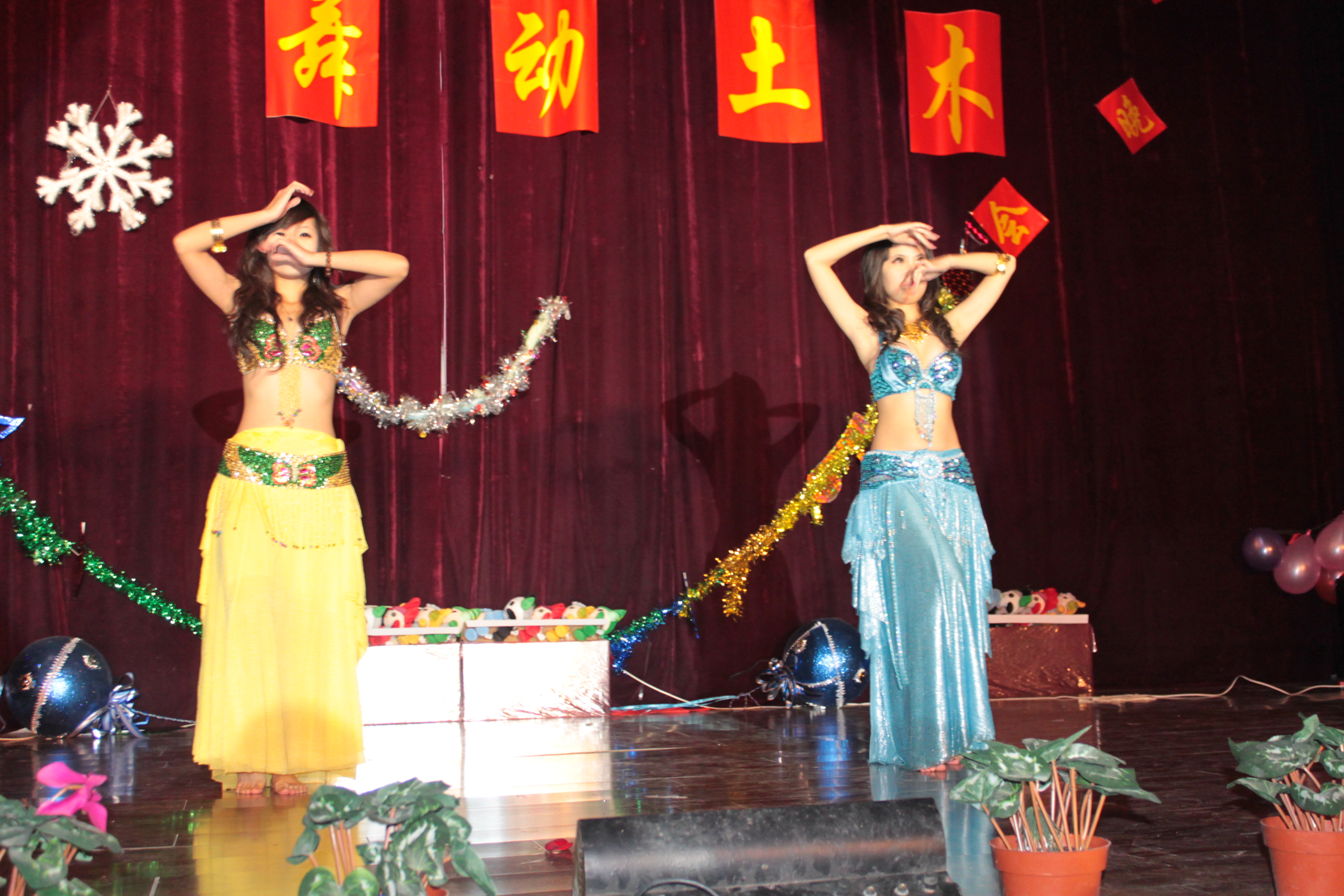 晚会由劲爆的摇滚乐队开场,主持人华丽登台宣布晚会正式开始。欢快俏皮的舞蹈, 让人捧腹大笑的相声,原创歌曲演奏,大胆娇艳的肚皮舞演表等无一不牢牢地吸引住了 观众的眼球,学生处孙文博处长的登台献艺,更是将晚会推向高潮。