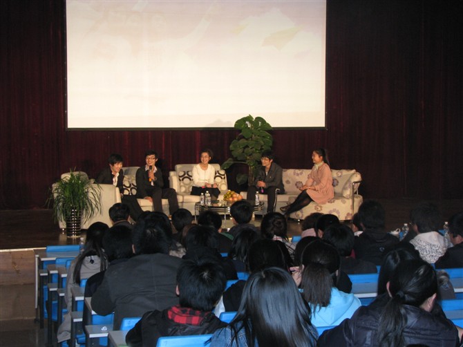 访谈会以“我与青春有约之给力青春”为主题,主持人牛丹阳与四位先进个人分别就学习、工作、感情、生活等问题进行了交流。他们以自己的经历为基础,畅所欲言,展现了自己的风采,为10级新生更好的学习、生活提供了建议与帮助。同学们被先进代表的精彩见解所感染,爆发阵阵掌声。而“在生活中努力做一个不可替代的人”“是男人,走出去就挺起一片天”“生命,不是现在将是何时”等经典话语引起了在座师生的强烈共鸣。