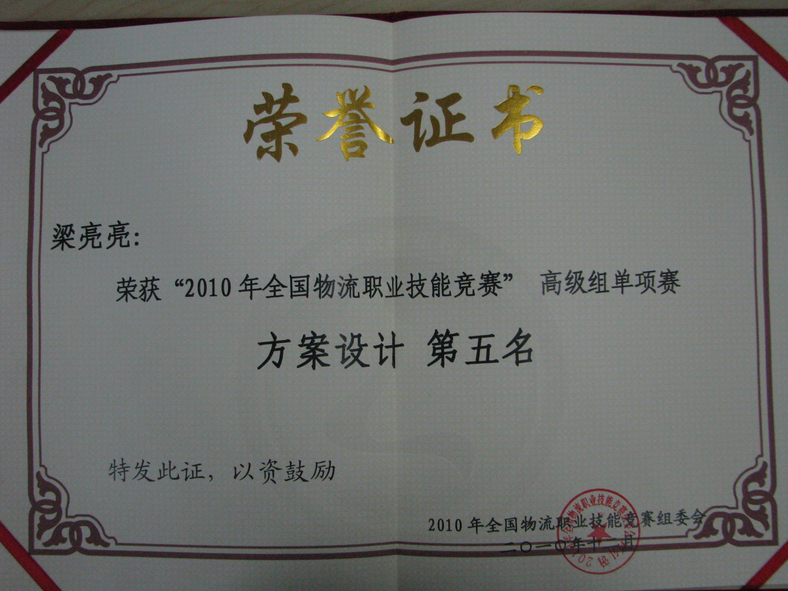 12月23日至12月26日,首届“全国物流职业技能竞赛”决赛在北京举行。决赛包含方案设计单项赛、物流单证单项赛及物流技能操作团体赛3项比赛。我院物流管理专业团队5名同学进入单项赛决赛并取得了优异的成绩:08级物流管理专业梁亮亮同学参赛作品《黄骅冬枣物流公司存在的问题及解决方案》获得方案设计单项赛第五名,陈宝龙同学参赛作品《某物流企业煤炭堆存损耗问题及解决方案》获得方案设计单项赛第十名;冯宁宁同学获得物流单证单项赛第七名。