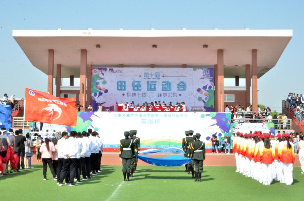 随后国旗班方阵、刀旗方阵、鲜花方阵、裁判员方阵和教职工方阵依次入场,本次方阵表演以“海滨十年”为主题,各系方阵都展示出自己独特的风采,展现了海滨人昂扬向上的精神和魅力。