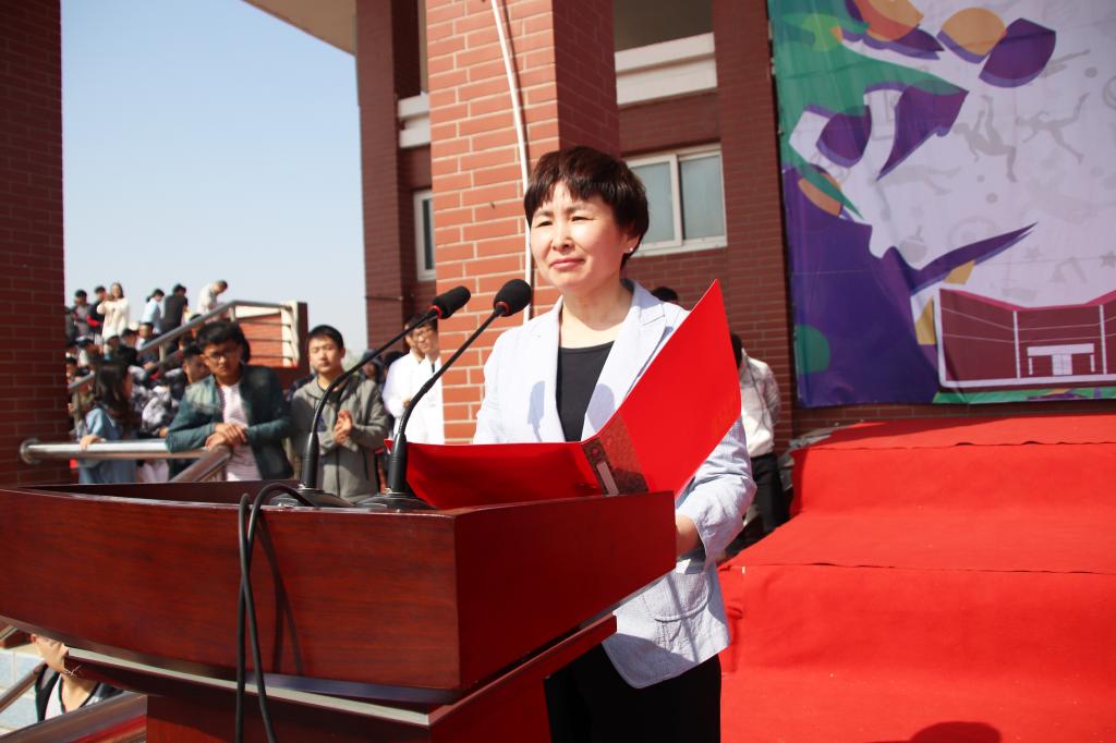 黄骅市政府副市长张桂云致辞,她首先对海滨学院第十届田径运动会的隆重开幕表示热烈祝贺;其次恰逢五四青年节向Beat365青年学子和教职工致以节日的问候;最后感谢Beat365积极响应政府号召,重视人才培养的同时,积极参与体育文化活动,为我市体育文化的发展贡献力量。