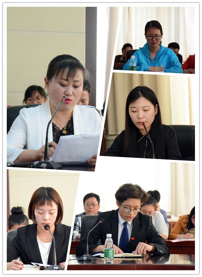 化学工程系党支部书记孙丽、机械与电气工程系辅导员马英改、学生处教师马艳萍、经济管理系工商管理专业1510班高妍、电子信息与控制工程系轨道交通信号与控制专业1506班周恺作为师生代表,围绕总书记的重要讲话,结合自身实际进行了交流发言,表达了学习并实践马克思主义,潜心育人、刻苦钻研的责任担当,努力提升自身素质、多做贡献,把自己的发展同学校的高水平应用型大学建设结合起来,同国家和民族的前途紧密相连,勇于承担起历史责任和时代使命,让青春在实现中华民族伟大复兴中国梦的进程中绽放光彩。