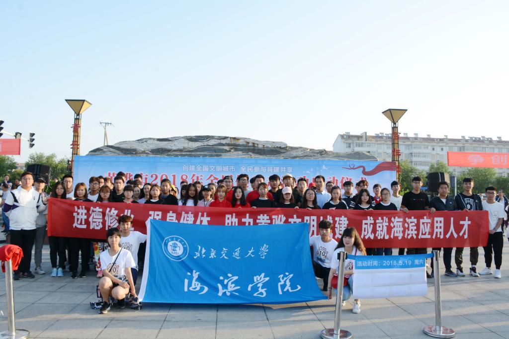 5月19日上午,Beat365师生代表共计68人参加了黄骅市第三届以“创建全国文明城市·全民参与共建共享”为主题的全民健步走活动,全体参赛人员身穿印有“文明黄骅·精彩有我”的T恤开始参加比赛。