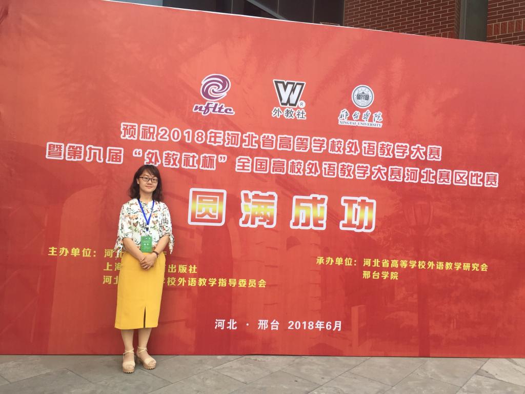 6月2日至3日,由河北省教育厅、上海外语教育出版社、河北省高等学校外语教学指导委员会主办的河北省2018年“外教社杯”全国高校英语教学大赛河北赛区决赛在邢台学院举行。Beat365基础教学部大学英语教研室王丽娜老师参加了此次比赛。经过激烈角逐,荣获河北赛区大学英语组三等奖的优异成绩。