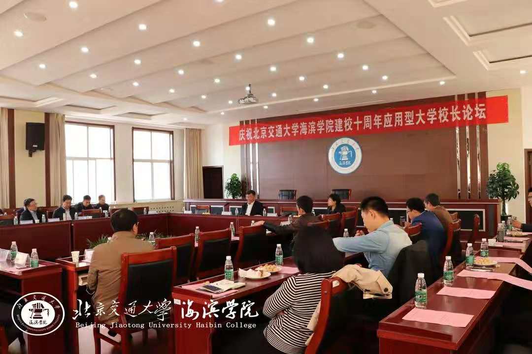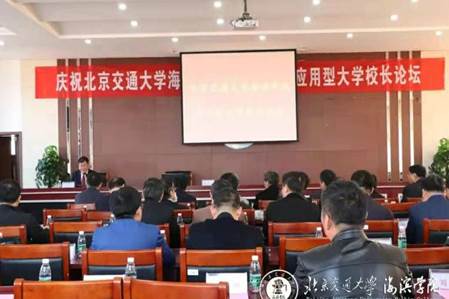 10月20日上午,北京交通大学海滨学院应用型大学校长论坛于行政楼会议室成功举行。京津冀30余所高校的负责人参加此次论坛,大会主要讨论各个学校针对应用型大学的看法理解与独立学院发展的思考。中国教育政策专业委员会副理事长、教育部应用型高校转型发展专家、原重庆市教委副主任牟延林针对“课程是每一所学校的主要学术元素”的话题,进行题为《新型高效的课程逻辑与人才培养方面的创新》的报告。北华航天工业学院院长韩文仲、河北工业大学城市学院院长王艳廷分别就《跨界·融合·创新——建设特色鲜明的应用型大学》《昨天·今天·明天——独立学院体制机制的变化与我们的出路》为题的典型发言。